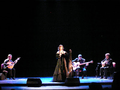 Como en el flamenco, las guitarras que acompañaron a la solista lusa, fueron tejiendo a cada paso una melodía con la que empujar al cantante para ahogarlo más y más en su sentimiento. A eso jugaba con su hermano, Pedro, a la guitarra portuguesa, Paulo Paz en el bajo acústico, y Pedro Pinhal en la guitarra clásica.