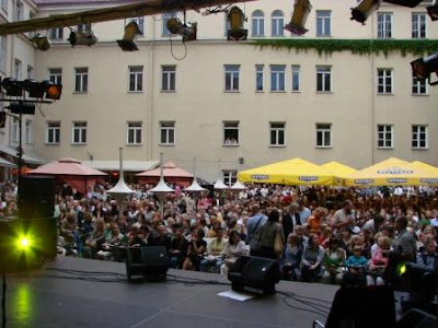 18 de Julho: o recinto "sui generis" do Christopher Summer Festival, um belíssimo páteo, em Vilnius, que ficou completamente esgotado, com mais de 1000 pessoas! Um público e um ambiente fantásticos!! No final deste concerto tive uma grande surpresa, no meio de tanta gente que estava a descobrir o fado pela primeira vez, chegou junto a mim, uma jovem rapariga que me deu uma pintura sua sobre o fado «Rosa sem Espinhos», do álbum Joana Amendoeira. Foi uma enorme emoção...